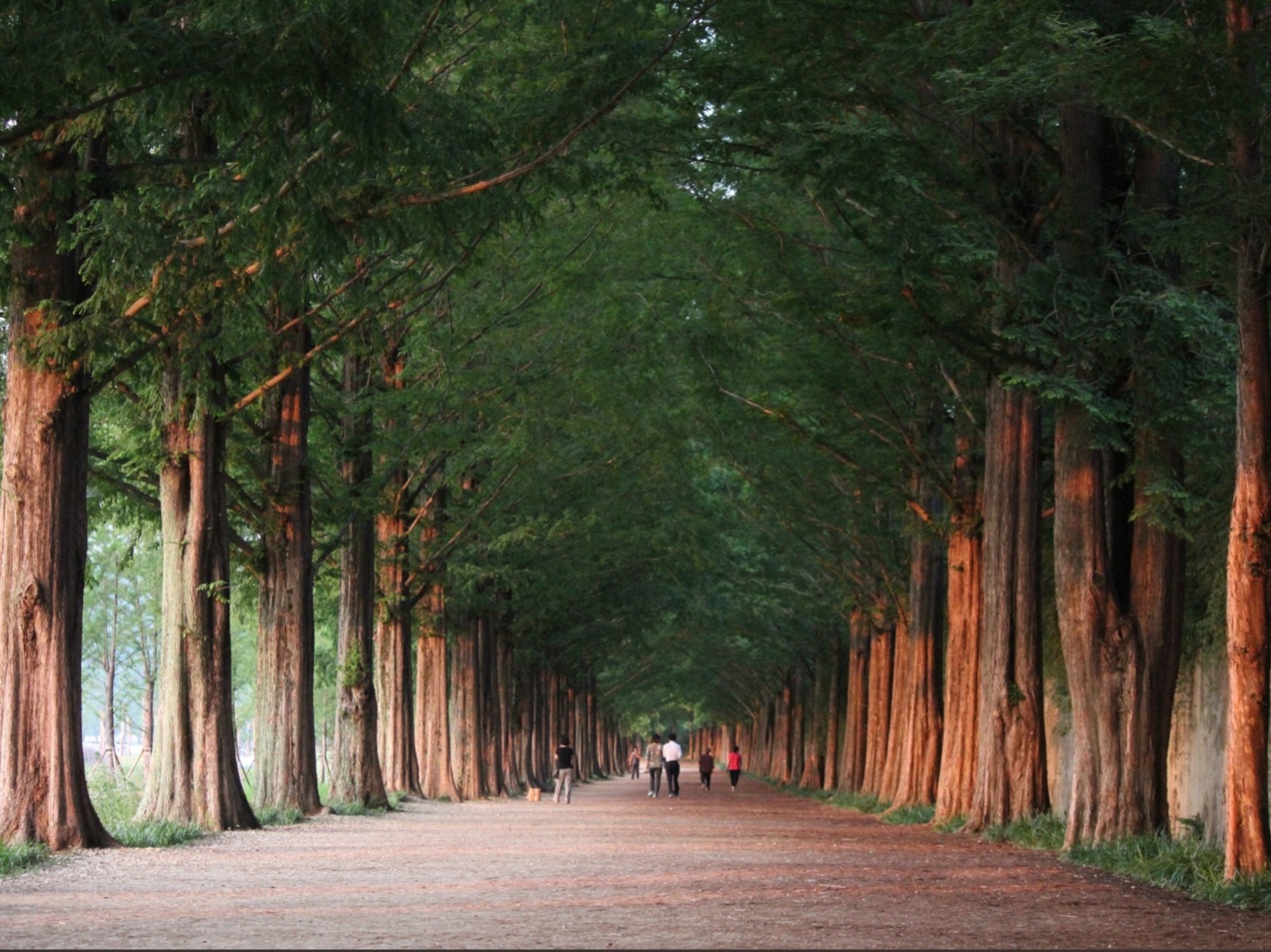 이후 메타세쿼이아길로 이동하면 이국적인 풍경이 펼쳐집니다. 약 4.5km의 길 양옆에 줄지어 선 메타세쿼이아 나무들은 터널처럼 감싸주며, 사진 찍기에 최적의 장소로 유명합니다. 일부 구간에는 황톳길이 있어 맨발로 걸을 수도 있으며, 근처에 발을 씻을 수 있는 공간도 마련되어 있습니다. 길 근처에는 메타프로방스라는 작은 마을이 있어 카페와 기념품점에서 쉬거나 간식을 즐길 수 있습니다.