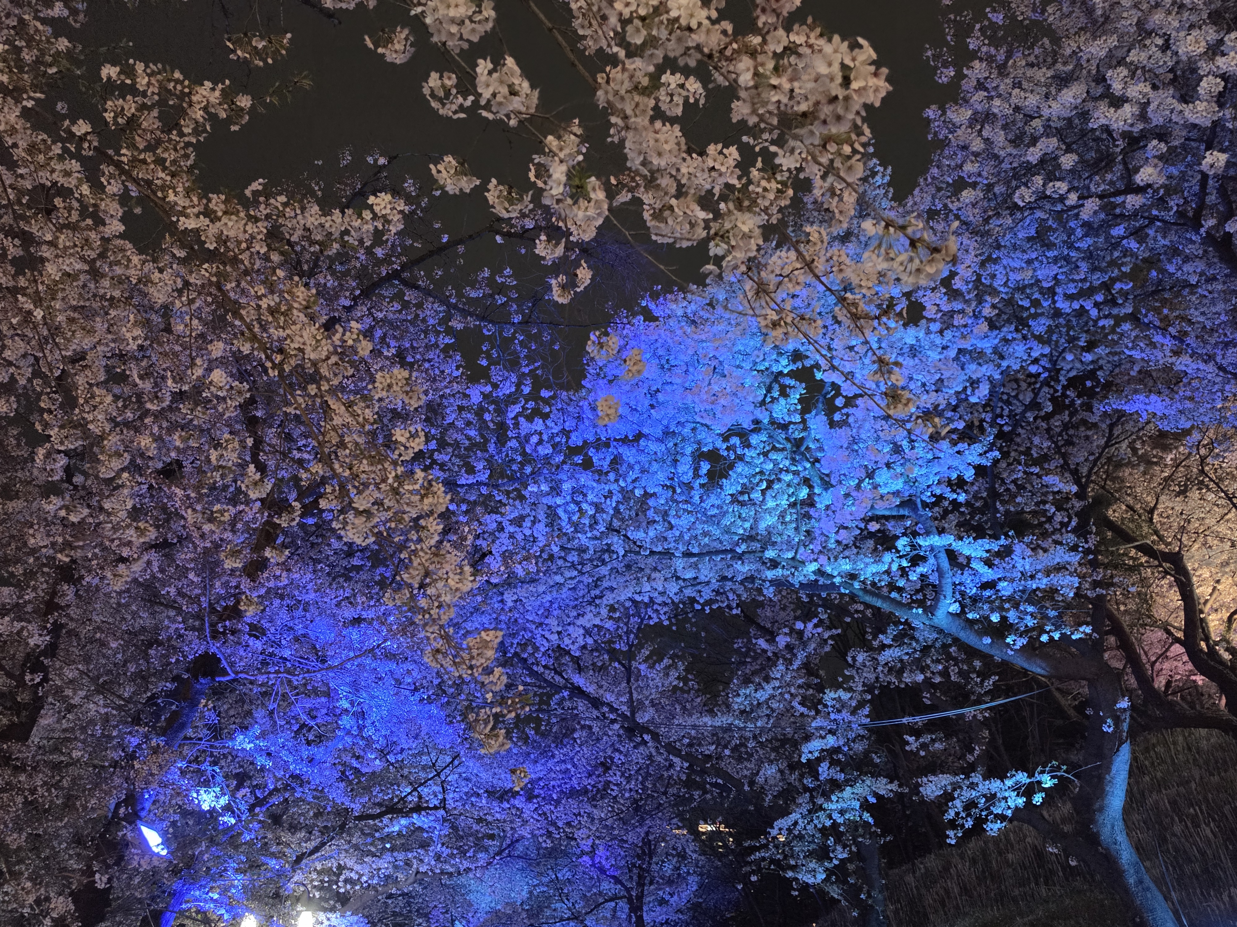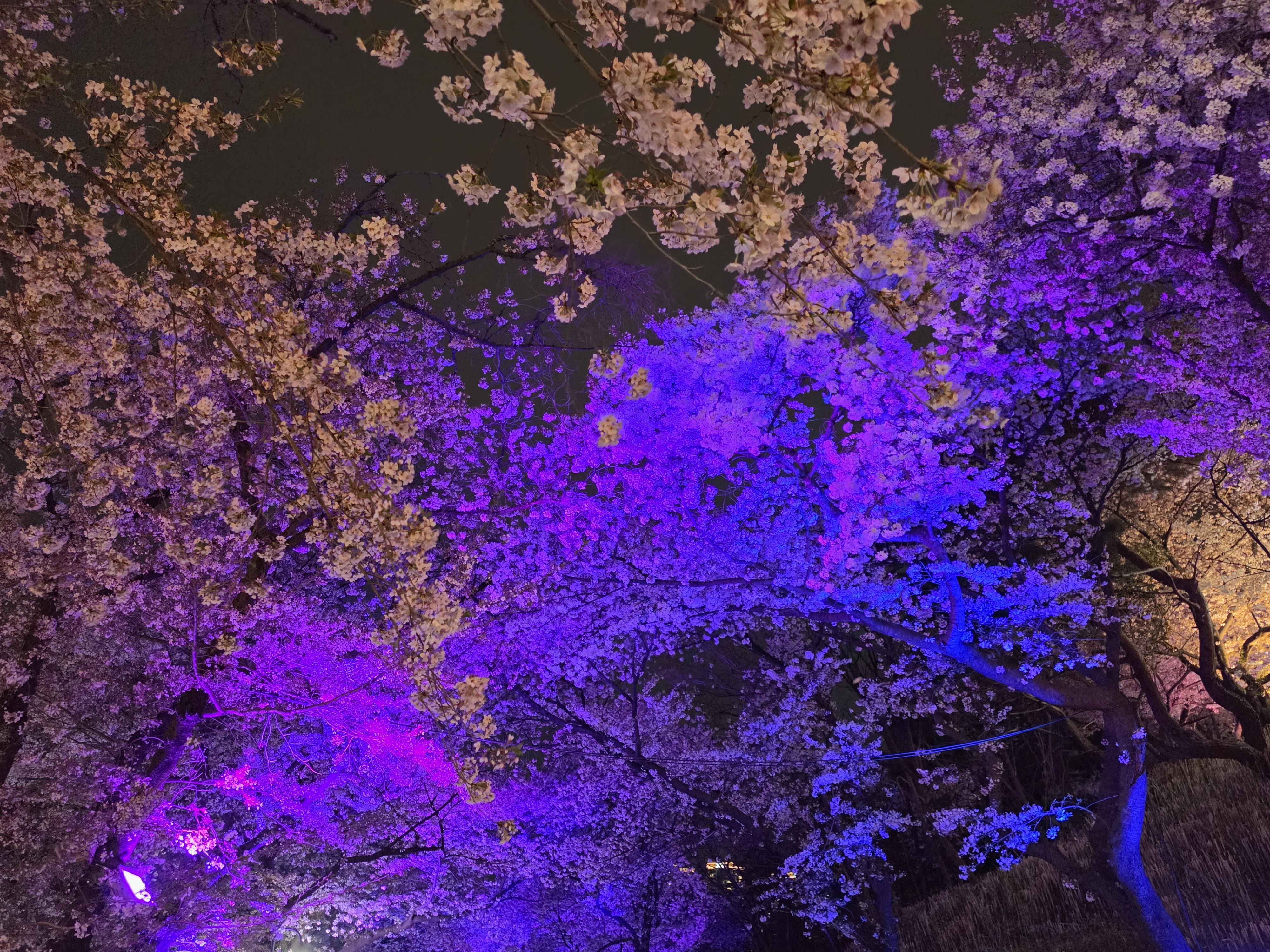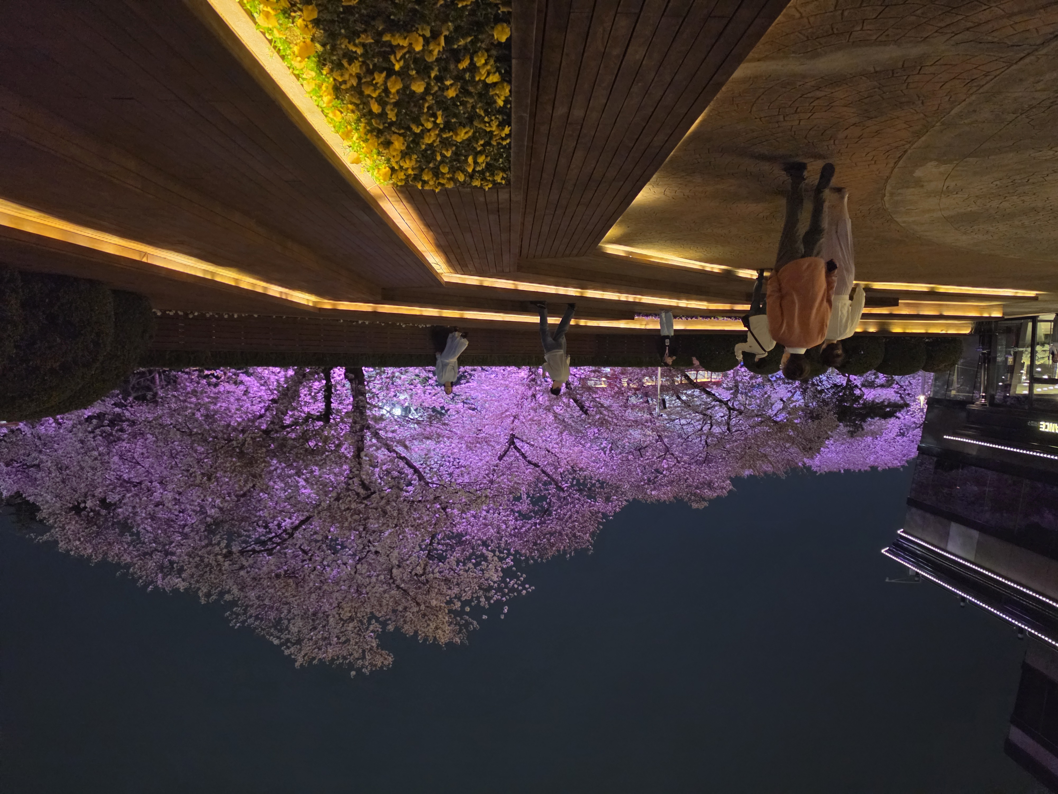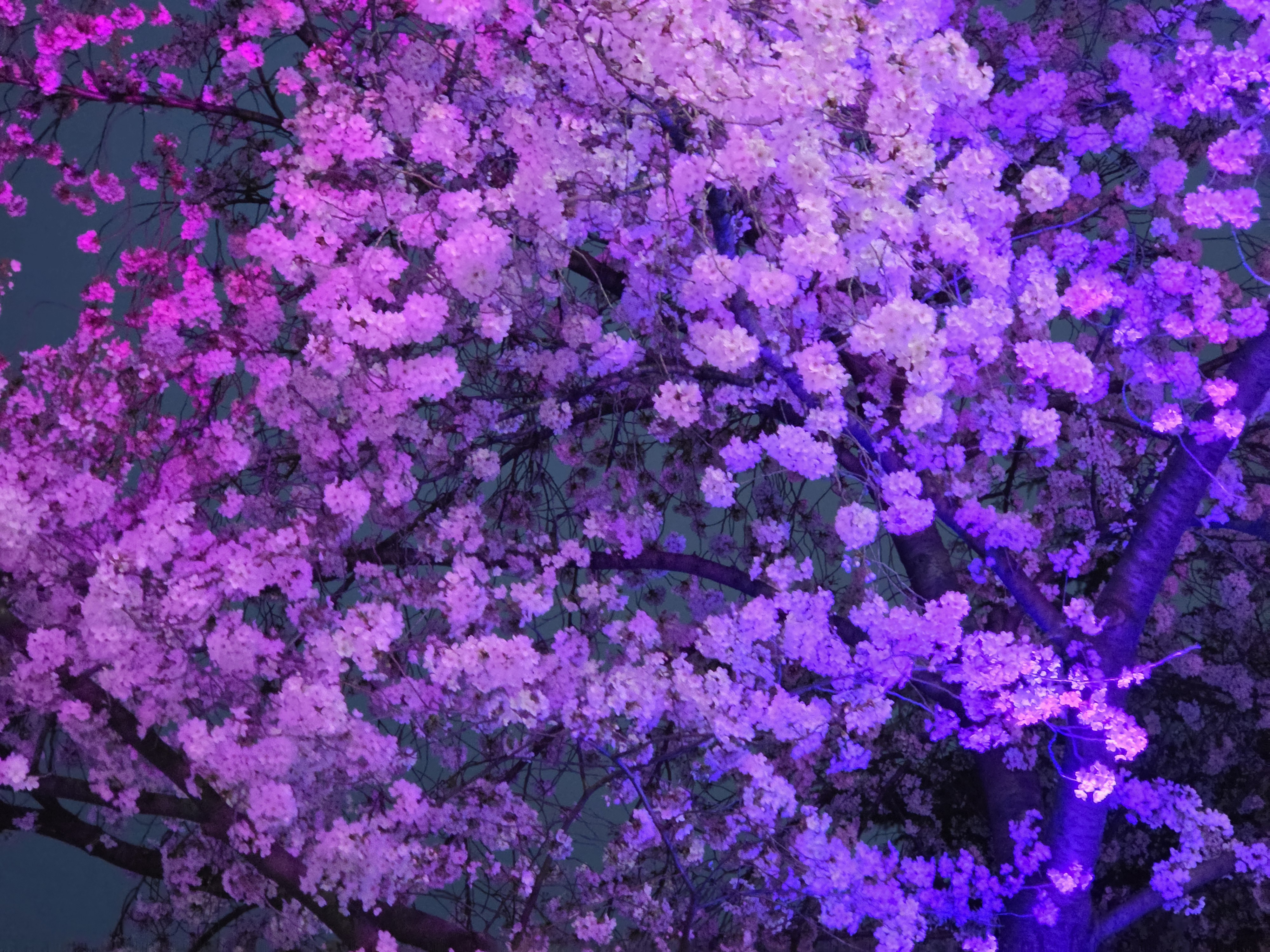 타워와 조명, 그리고 벚꽃이 함께 어우러지면서