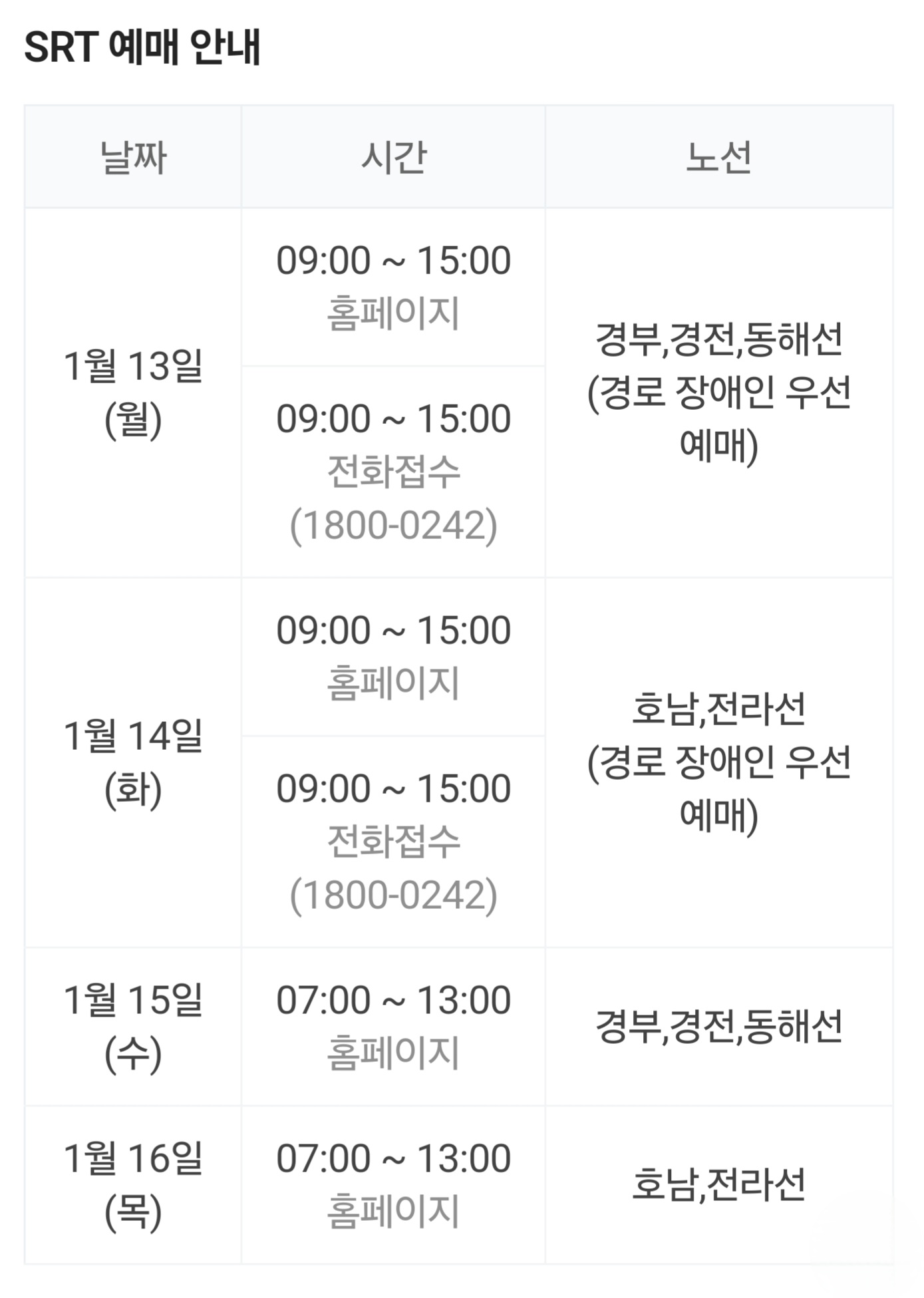 ◾️SRT 예매기간 : 25.1.13.(월) ~ 1.16.(목), 4일간